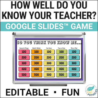 This is a student favourite game every year. I’ve used it from Kindergarten to Grade 6 and it never gets old. The beauty of this game is that it is 100% customizable to your needs. Small group or whole class, any subject area, any age…