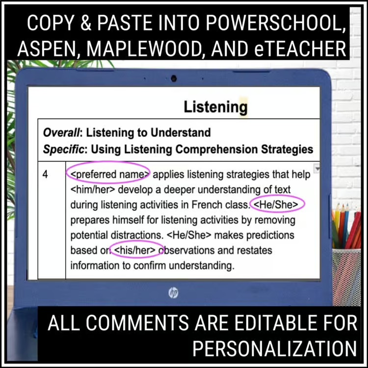 This comment bank was created after we received numerous requests from buyers who liked our CORE FRENCH report card comments.